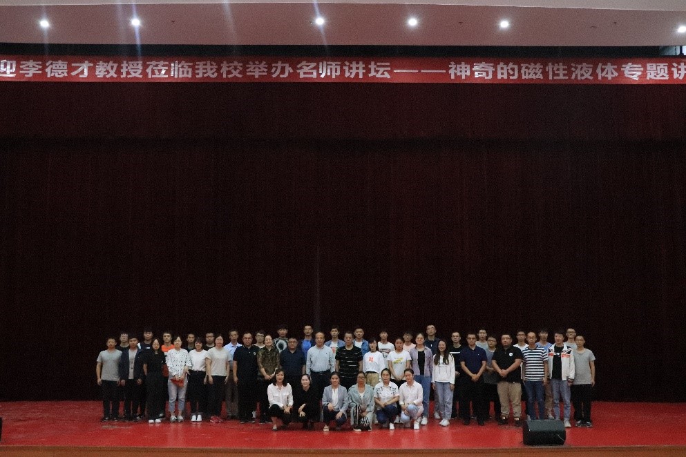 李德才教授以航空航天、核电军工、民用机械等磁性流体密封的广泛应用做引,全面介绍了磁性液体的概念、制备方法和常用磁性液体的物理化学性能,重点分析了磁性流体力学特性及其在密封中的应用。李教授诙谐幽默的语言将磁性液体的应用深入浅出地展现在大家面前,赢得了台下师生热烈的掌声。最后,李教授与我校学生进行了现场互动交流。