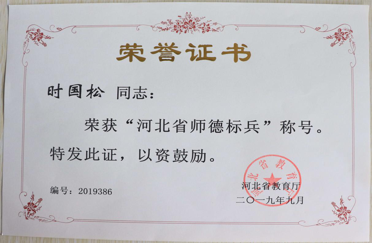 按照河北省教育厅、中共河北省委机构编制委员会办公室、河北省发展和改革委员会、河北省财政厅、河北省人力资源和社会保障厅印发的《河北省教师教育振兴行动计划(2018—2022年)》要求,全省开展2019年度师德标兵评选活动。我校土木建筑工程学院副院长时国松荣获2019年度河北省师德标兵”称号。