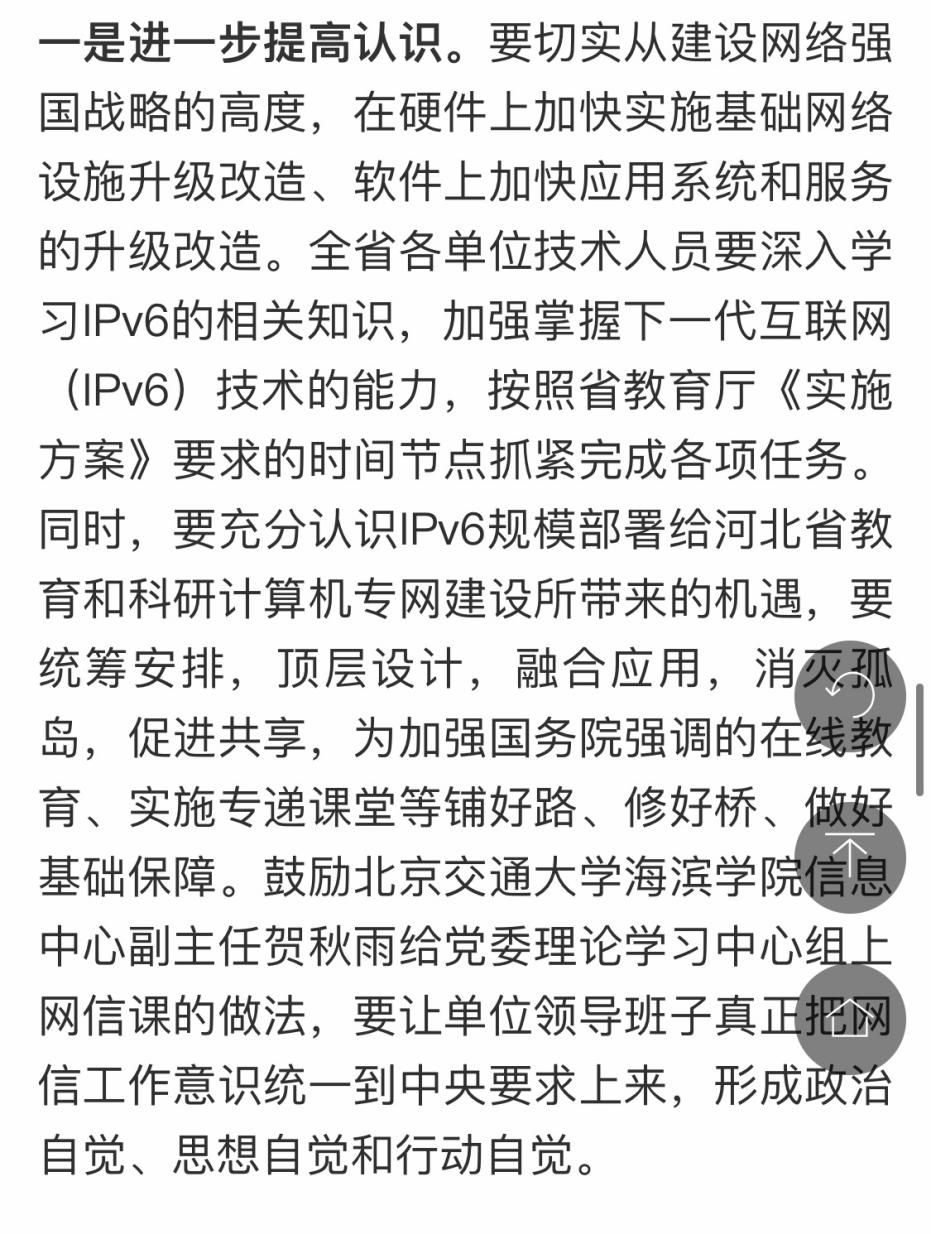 10月25日,河北省教育系统IPv6规模部署暨网络安全技术交流会在衡水学院召开。本次会议由河北省教育厅主办,会上,我校党委理论学习中心组上网信课的做法获得河北省教育厅肯定。