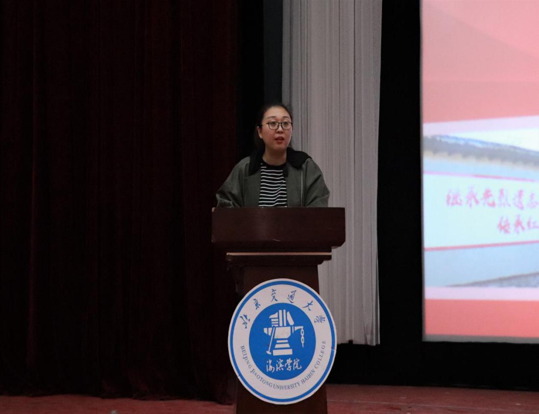 我校宣传统战部副部长杨婷婷指出,作为新时代的青年要牢记“黄骅”精神,学习革命烈士用热血铸就的爱国主义精神,继承先烈遗志,继续发扬艰苦奋斗、自强不息的优良传统,刻苦学习文化知识,用自己的青春活力和满腔热血,为实现中国梦而奋斗拼搏。