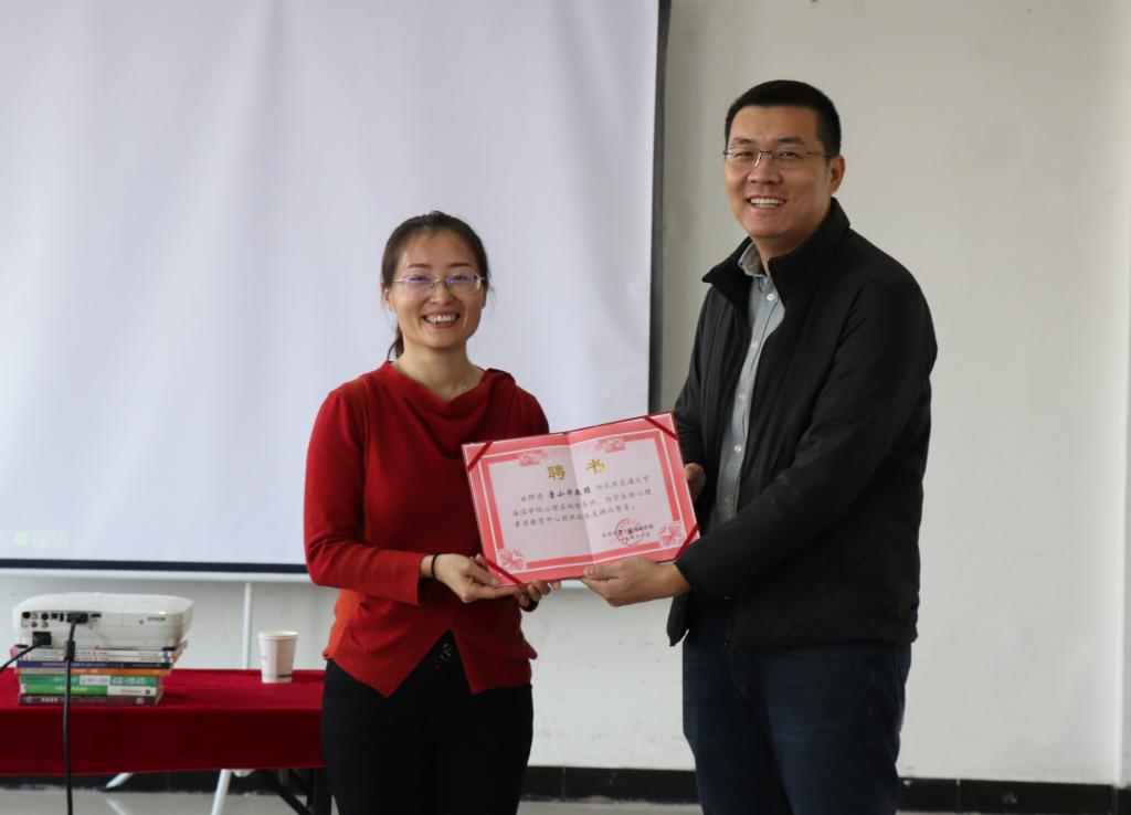 党委副书记魏炜为北京交通大学学生心理素质教育中心副主任鲁小华颁发聘书