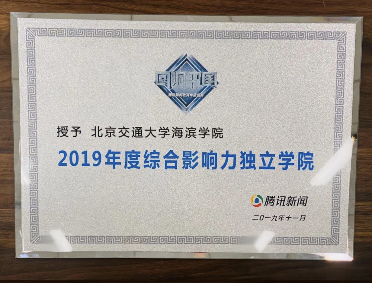 11月27日,由腾讯网主办的2019“回响中国”教育盛典在北京举行。经过网友投票、媒体投票、专家投票,综合评判参评高校的网络口碑、媒体公信力和硬件实力等,北京交通大学海滨学院荣膺“2019年度综合影响力独立学院”,此次是我校第五次荣获该荣誉称号。