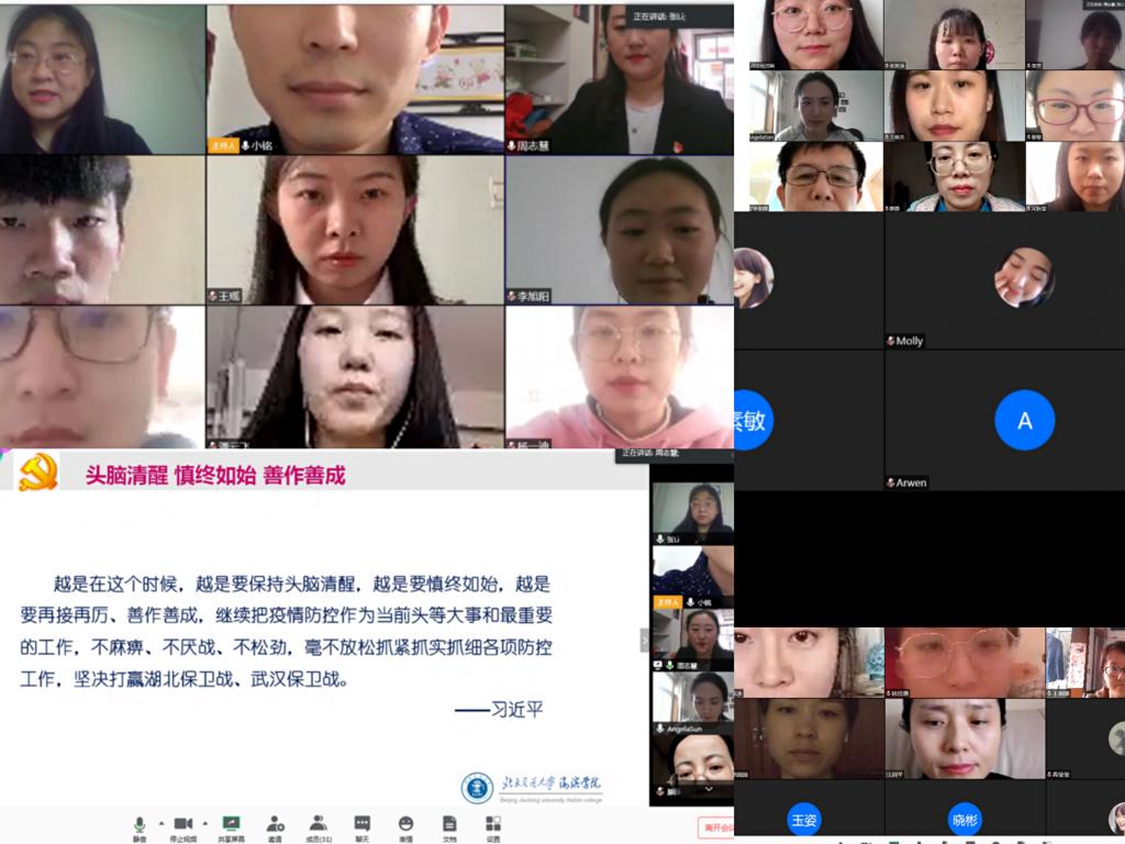 本次云端主题党日活动,充分体现了党组织的凝聚力、战斗力和党员同志的党性觉悟、担当精神,体现了外国语学院直属党支部为进一步确保组织生活不断线、凝聚力量保障学校各项工作开展的模范作用,同时也深刻落实了习近平总书记关于疫情防控的系列重要讲话和指示精神,共同坚信一定能渡过难关,迎接春暖花开的明天。