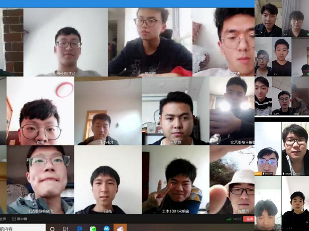 为加强学生对新型冠状病毒自我保护措施的认知,增强同学间的交流与合作,增强集体责任感与使命感,我校土木建筑工程学院决定开展“青春战‘疫’,共克时艰”网络主题班会活动,各班班长积极组织全班同学开展云视频会议,带领同学们大声宣读抗“疫”承诺,宣传疫情防控知识,坚定同学们的抗“疫”决心。