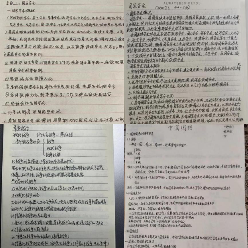 面对云端军事理论课,同学们也是丝毫不慌真听讲、整理笔记已成为他们的习惯。课上同学们集思广益,积极在讨论区老师进行互动课堂气氛十分活跃。