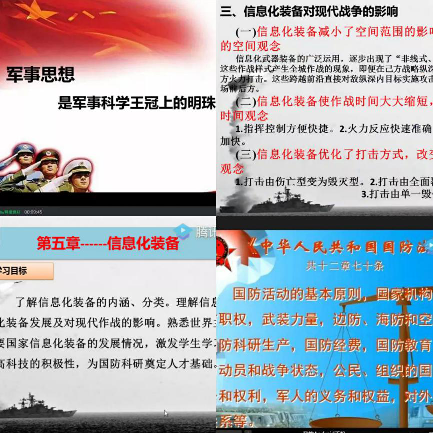 为培养大学生的国防意识,提高同学们的军事素养,培养同学们的家国情怀,我校精心制定教学方案,紧贴疫情防控,深挖国防元素,从7月3日开始,开设为期四天的线上军事理论课