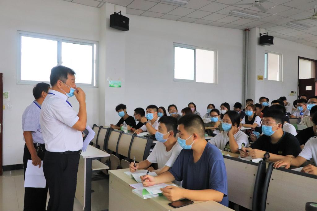 97,我校迎来新学期开学第一天。为实现疫情防控条件下的新学期良好开局,校长王化深、党委书记魏旺强、副校长张长铎、副校长徐爱国、党委副书记魏炜、副校长赵金楼、校长助理邵晓康、校长助理吴立军等校级领导,教务处、学校办公室、人事处、学生处、教学督导办公室、资产设备管理处、后勤服务中心等单位的相关负责老师共36人分8个小组,于上午7点40分在知行楼A105集合召开了简短的秩序检查工作布置会后,对思源楼、知行楼、通方楼、实验楼共83个课堂的教学秩序进行了集中检查。同时,各教学单位领导、教师组织了单位内自查团队对本单位相关教师课堂进行了教学秩序及规范教学检查。