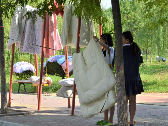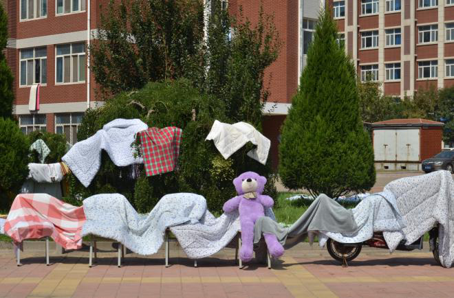 进入宿舍之后,虽然并没有看到床铺长蘑菇,厕所长棵树,动物筑巢的“景象”,但是被褥,枕头,衣服等物品都或多或少带上了霉味。于是,各路“神仙”纷纷上路拿出“沉睡”了一整个寒假的被子进行“花式晾晒,迎接新学期的到来!