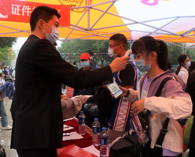 受疫情影响,家长不能陪同进校,为保证新生健康顺利报到,我校教职工自愿结成“海滨教职工爱心车队”帮助学生运送行李,海滨食堂也无偿为我校学生准备姜汤驱寒。迎新志愿者们在校门口陈列排排帐篷,为新生搭建起校园咨询处和行李寄存处他们组织学生间隔排队,依次进行手物消毒、身份及健康绿码核验、体温检测等检查流程。忙碌的学生志愿者用最关切的问候、最贴心的服务、最灿烂的微笑为每一位到来的新生传递暖心关怀,让新生体会到家的温暖。