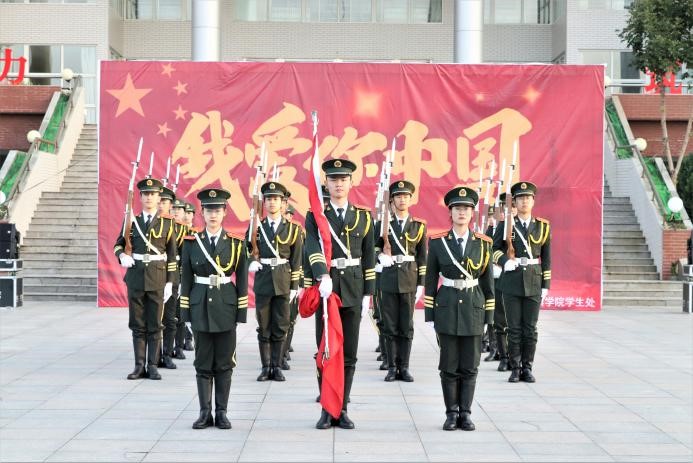 9月30日上午7时,我校隆重举行以“国旗在我身边”为主题的升旗仪式,为中华人民共和国成立71周年献礼,共同祝愿伟大的祖国更加繁荣富强。我校党委副书记魏炜、各院系副院长(副主任)、学工办主任受邀出席本次升旗仪式,全体2020级新生辅导员老师及部分学生代表参会。学生处教师王达主持此次升旗仪式。