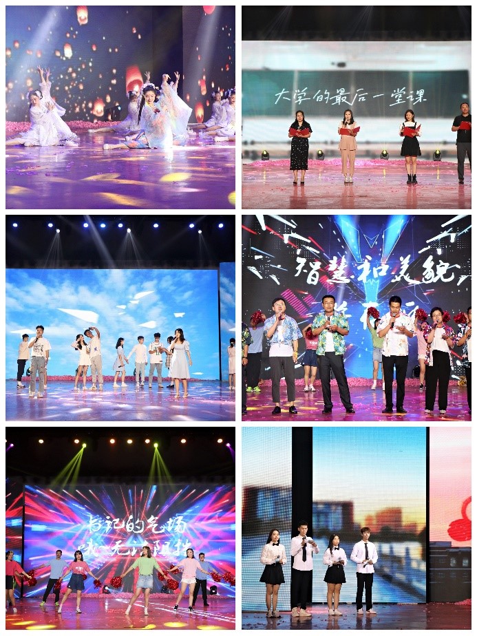 本次晚会以与党同行,携梦远航为主题,以灿烂韶华记忆探索时光知味启航筑梦远行为篇章,勾勒出毕业生们人生成长的不同阶段,寓意我校学子砥砺前行、奋发拼搏、扬帆起航的精彩人生。