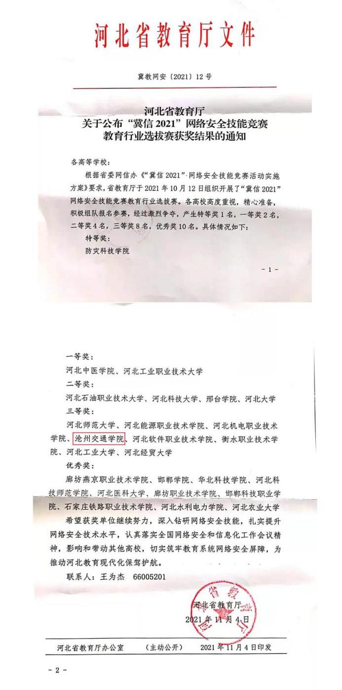 我校在“冀信2021”网络安全技能竞赛 教育行业选拔赛中斩获佳绩
