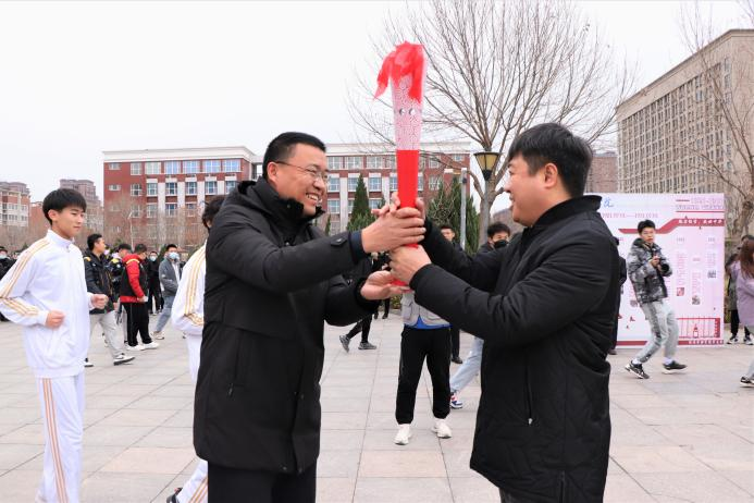 一代人有一代人的使命,一代人有一代人的担当,火炬传递正式开始。党委副书记吴立军将象征着勇敢团结的火炬传递给学生处处长王庆松,各位师生代表在校园接力奔跑,将庄严神圣的火炬传递,立德树人的教育火苗也在熊熊燃烧,我校在未来将持续发热,蓬勃发展。