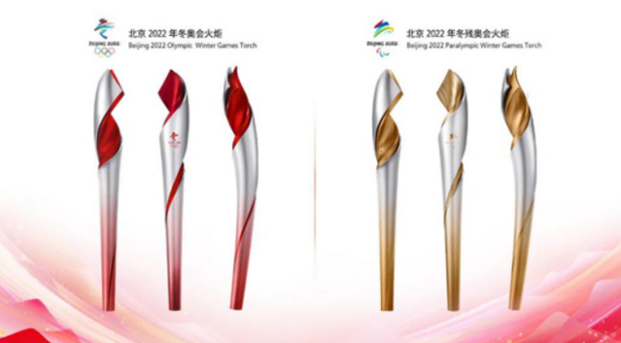北京2022年冬奥会和冬残奥会火炬整体外观与北京2008年奥运会开幕式主火炬塔形态相呼应,体现了“双奥之城”的传承与发扬,自下而上从寓示吉祥的祥云纹样逐渐过渡到剪纸风格的雪花图案,旋转上升,如丝带飘舞,最后呈现为飞扬的火焰,祥云传达吉祥的寓意,是北京奥运会的延续;雪花表现冬奥会的特征,是北京2022年冬奥会的创新。