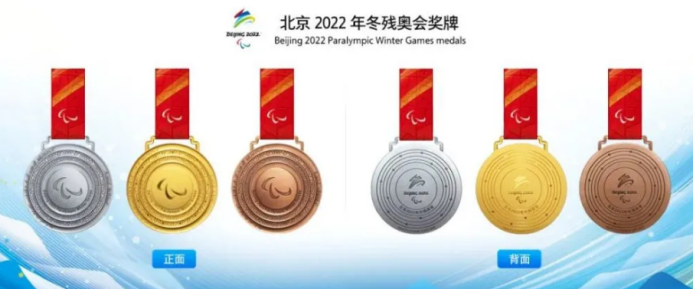 本着“两个奥运 同样精彩”的原则,冬残奥会奖牌与冬奥会奖牌选用同样的形象来源,设计一脉相承。奖牌正面中心刻有国际残奥委会标志,周围刻有北京2022年冬残奥会英文全称(Beijing 2022 Paralympic Winter Games)字样及金、银、铜的盲文。
