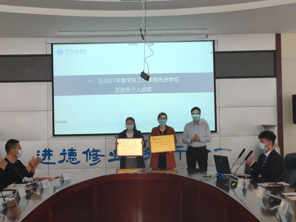 学生处处长王庆松为2021年度学生工作优秀个人代表颁奖。