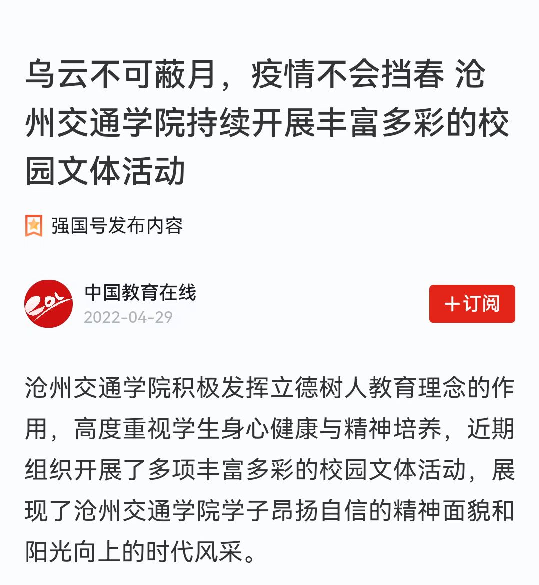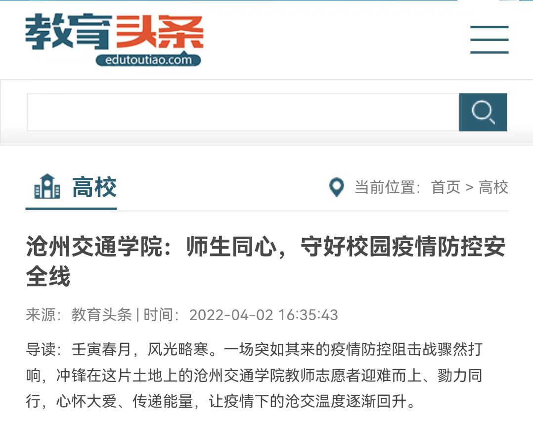 疫情防控以来,我校师生积极响应当地政府各项防疫政策,主动请缨,扎实做好各项抗疫工作。日前,学习强国、教育头条、河北教育网等多家主流媒体报道了我校师生抗疫事迹,并给予高度肯定。